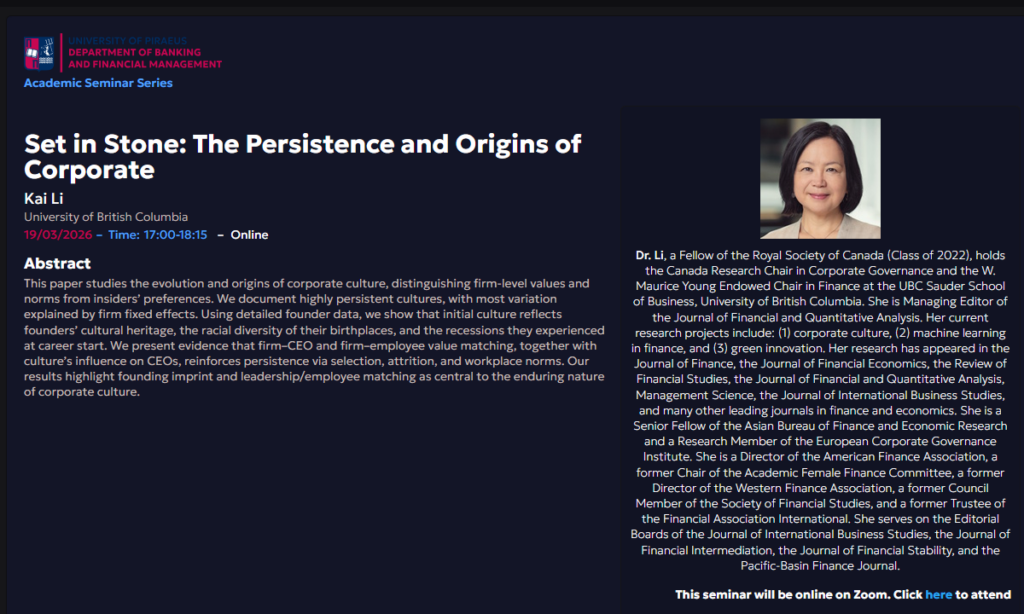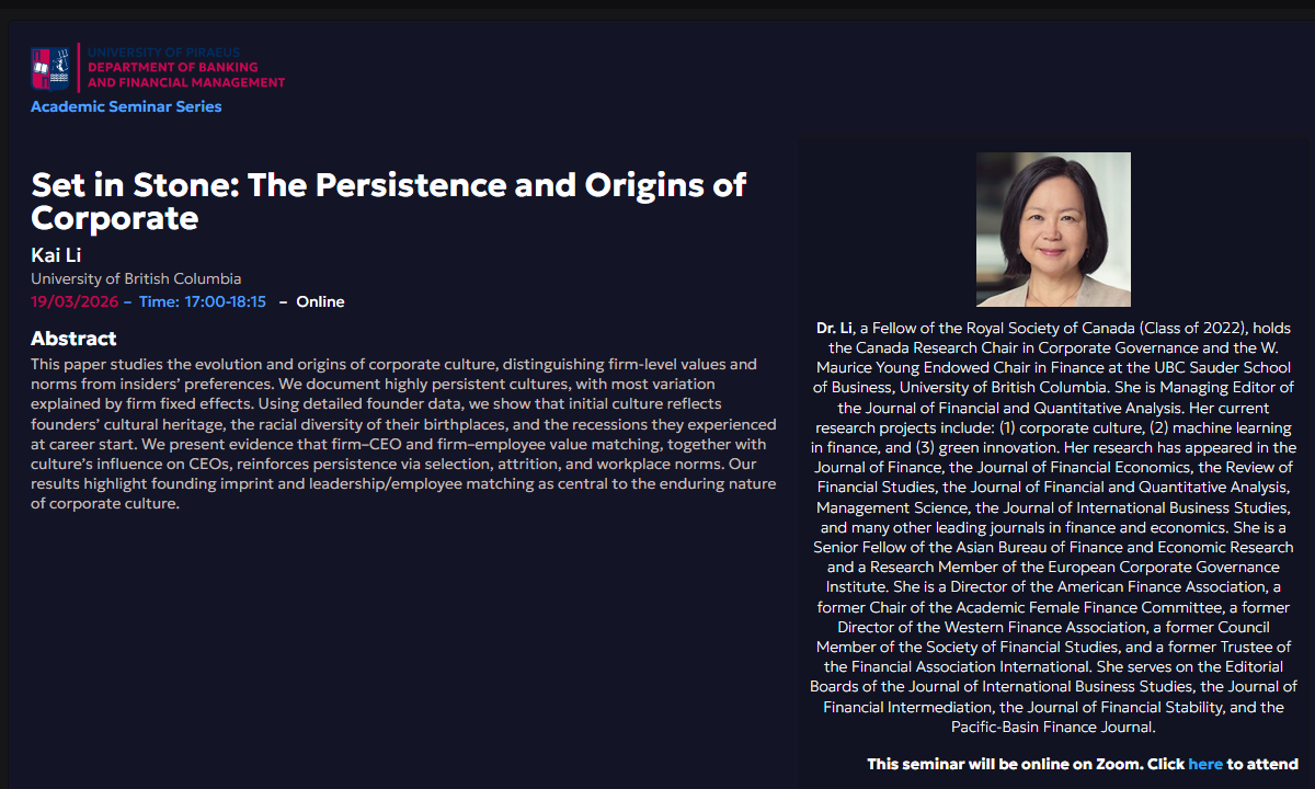 Academic Seminar Series, Kai Li, University of British Columbia – Set in Stone: The Persistence and Origins of Corporate